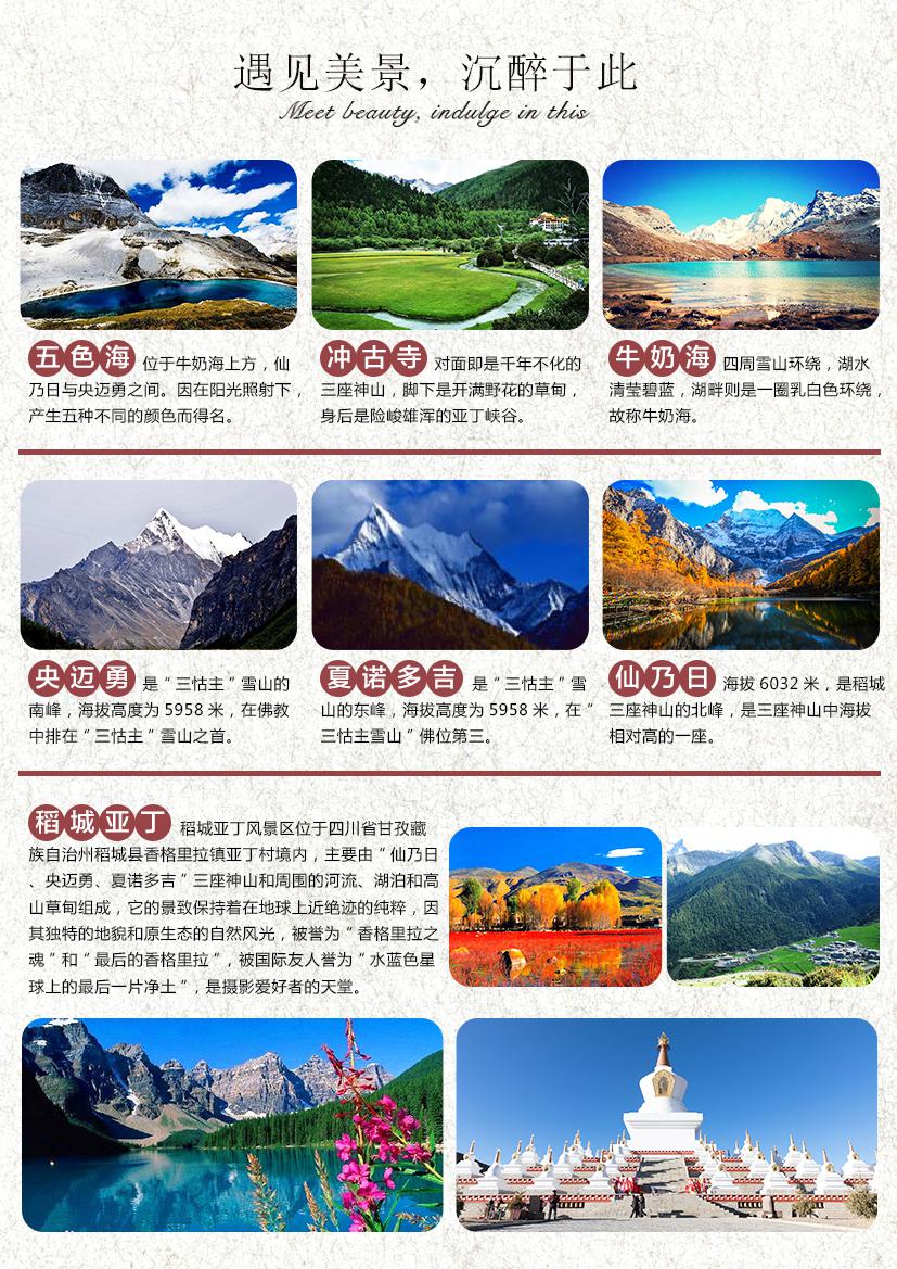 亚丁沿途风光为免费景点,是旅行社为丰富行程所作安排,如遇堵车或不可抗力因素,不涉及任何退费!