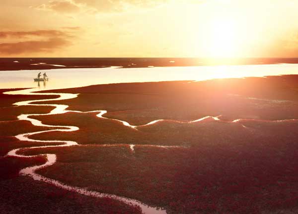 2 游览【盘锦红海滩自然风景区】是一处著名的国家级自然保护区,它以全球保存得最完好、规模最大的 120 万余亩的苇海湿地内,这里是丹顶鹤繁殖的最南限,也是世界珍稀鸟类黑嘴鸥的主要繁殖地,无垠的苇海里栖息着二百六十余种数十万只鸟类,以其特有的大自然孕育的一道奇观----红海滩而闻名海内外,织就红海滩的是一棵棵纤柔的碱蓬草,她每年 4 月长出地面,初为嫩红,渐次转深,由红变紫,大片大片的碱蓬草长在一起就汇聚成了红色的海洋