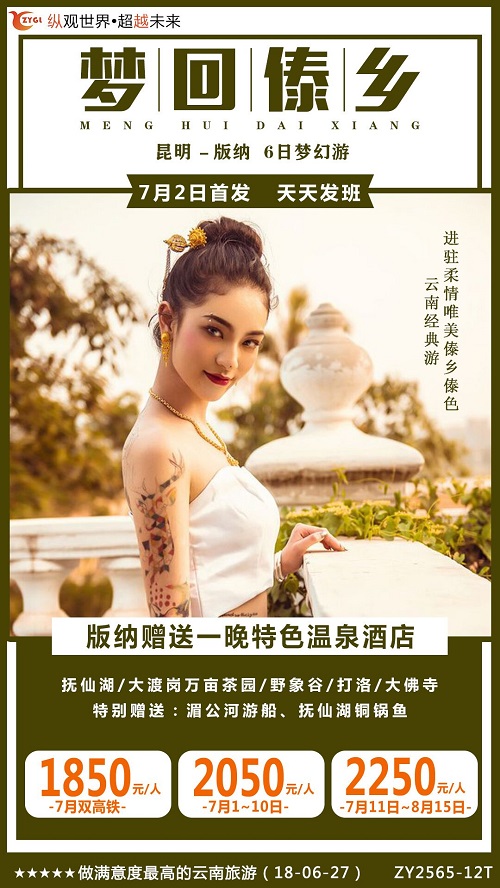 早餐后,乘车前往中缅边境第一小镇——【打洛】,途中还可观看到傣族、哈尼族、拉祜族等多个少数民族生活的村寨风光,抵达国家级口岸打洛,国门留影。后乘车游览古代傣王朝皇家寺院——东南亚最大的南传佛学院【勐泐大佛寺》(电瓶车40元/人 自理),攀登南莲山山顶,版纳州府景洪市全景一目望穿,仰赏吉祥大佛,参观大雄宝殿,开光诵经,佩带平安环,满足现代游客对历史、佛教文化、地域文化等进行观赏体验的需求,同时还可参与傣族泼水活动,近距离体验孔雀放飞的美妙,,参观黄龙玉,之后入住温泉酒店。放松身心,洗去这几天的疲惫!!
