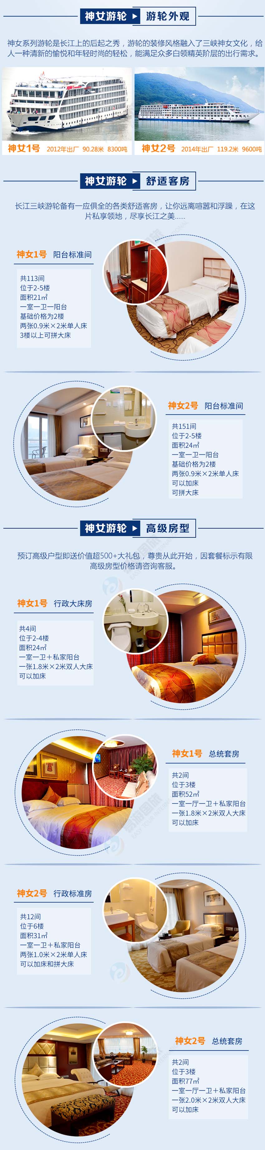 神女1号:重庆-宜昌(周四晚登船,21:30开航)、宜昌-重庆(周日晚登船,周六开航)