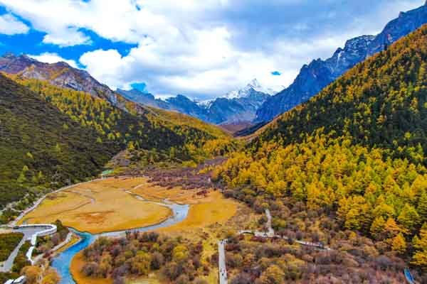 游览优势:秋季是稻城亚丁的黄金季节,层林尽染,红草地与金黄杨林构成油画般景观,天气晴朗,适合摄影。