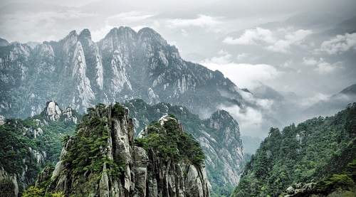 “五岳归来不看山,黄山归来不看岳”,有如此高评价的黄山是不是已经引起你的兴趣了?黄山峰岩青黑,遥望苍黛,其主体由花岗岩组成,在长久的侵蚀作用下,岩石被割裂,裂隙交错形成了独特的景观,前山多球状风化,后山多柱状风化,这就是黄山“前山雄伟,后山秀丽”的地貌特征。