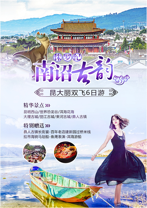 3、应带物品:出团时请自备牙具,洗漱用品,拖鞋,因多数酒店不配备此类物品,主要是为环保及个人卫生。云南日照强,紫外线强。长时间在户外活动,请戴上太阳帽、太阳镜,涂抹防霜,以保护皮肤。天气变化多端,请携带雨具。