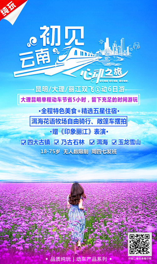 还你所不曾拥有的宁静。相信每一位到大理旅行的人都不会错过大理宁静的美丽风光。坐在洱海边的花语牧场,观一望无际的花海,仿若人间仙境,彩蝶纷飞,蜜蜂起舞,一个个忙碌而又欢快的精灵,在花丛之间穿梭往来,处处充满了一种奔放、自由和令人陶醉神往的勃勃生机,一阵阵的幽香环绕着你的身周,挑逗你的味蕾,直至沁人心脾!阳光、蓝 天、白云、花语、洱海,生活本该如此安宁自在,不是吗?这的确是旅行中一种享受。我们还为您准备了自行车,面临洱海,背靠苍山,旅行好友,春暖花开…沐浴在徐徐的海风,和暖暖的阳光下,让你感受从未有过的愉悦和放松。之后乘车至丽江,晚餐品尝山林土鸡宴。游览美丽的【黑龙潭公园】,公园内垂柳飘指,一潭澄碧,树底天光云影,树梢楼台隐现。沿潭右堤至锁翠桥,象山半壁也映入水中,使黑龙潭山中有水,水中有山,山水相映,景色无比秀丽。“高原姑苏”【丽江古城】,感受高原上的“杨柳依依,小桥流水人家”别样的“姑苏小城”您拥有充裕的时间去自由活动,让您随性挥洒散漫时光,让身心沉醉在这传说中的丽江……。柔软时光,艳遇也无妨!